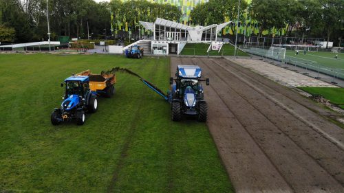 In de tweede week zijn we gestart met het ontgraven van het natuurgras voetbalveld. De vrijgekomen toplaag wordt opgeslagen in een depot van de gemeente Utrecht, met als doel dit materiaal te hergebruiken voor toekomstige projecten binnen de stad.
